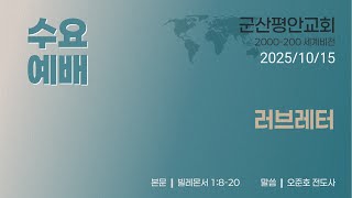 러브레터(20251015 수요예배) 오준호 전도사2025.10.26 빌레몬서  1 : 8 ~ 20 실패가 패배가 되지 않도록(20251022 수요예배) 장진명 목사2025.10.26 마가복음  14 : 66 ~ 72 여호와여! 나는 누구입니까?(20251008 수요예배) 한성욱 목사2025.10.8 역대상  17 : 16 ~ 27 참 좋으신 하나님(20250910 수요예배) 장진명 담임목사2025.9.10 마태복음  7 : 7 ~ 11 너희는 세상의 빛과 소금이라(20250903 수요예배) 오준호 전도사2025.9.3 마태복음  5 : 13 ~ 16 마른뼈가 살아나리라 한성욱 목사2025.8.31 에스겔  37 : 1 ~ 14 믿음으로 사는 인생(20250820 수요예배) 장진명 목사2025.8.24 히브리서  11 : 24 ~ 29 외모지상주의(20250813 수요예배) 오준호 전도사2025.8.13 사무엘상  16 : 7 ~ 7 섬김의 권세(20250806 수요예배) 한성욱 목사2025.8.9 마가복음  10 : 32 ~ 45 죄의 영향력을 끊으라(20250730 수요예배) 장진명 담임목사2025.7.30 로마서  1 : 18 ~ 32 더보기