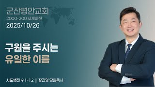 구원을 주시는 유일한 이름(20251026 주일예배) 장진명 목사2025.10.26 사도행전  4 : 1 ~ 12 자격없는 자를 부르신 주님(20251019 주일예배) 장진명 목사2025.10.19 마태복음  9 : 9 ~ 13 믿음의 전환점, 하나님과의 동행(20251012 주일예배) 장진명 목사2025.10.12 창세기  5 : 21 ~ 24 생각이 깨져야 예수가 보인다(20251005 주일예배) 장진명 목사2025.10.5 마태복음  13 : 53 ~ 58 폭풍 속에서 배우는 믿음(20250914 주일예배) 장진명 담임목사2025.9.14 마태복음  8 : 23 ~ 27 믿음의 걸음을 내딛어야 할 때(20250907 주일예배) 장진명 담임목사2025.9.7 사무엘상  17 : 41 ~ 49 하나님 마음에 맞는 사람(20250831 주일예배) 장진명 담임목사2025.8.31 사도행전  13 : 21 ~ 22 미지근한 신앙을 버리라(20250824 주일예배) 장진명 목사2025.8.24 요한계시록  3 : 14 ~ 22 작은 능력의 큰 승리(20250817 주일예배) 장진명 담임목사2025.8.17 요한계시록  3 : 7 ~ 13 다시 살아나야 합니다(20250810 주일예배) 장진명 담임목사2025.8.10 요한계시록  3 : 1 ~ 6 더보기